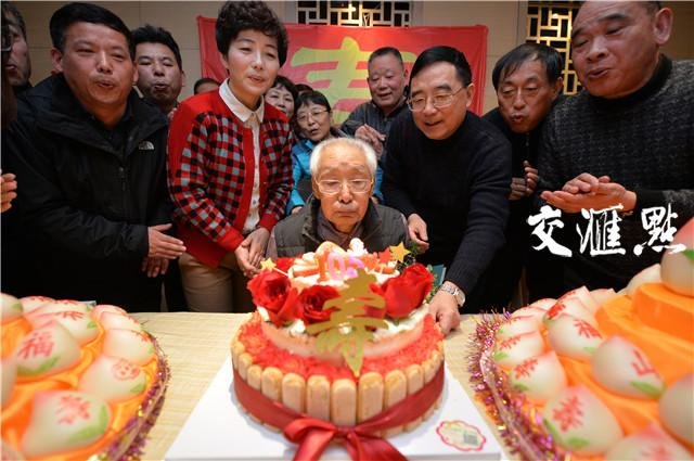 2017年1月15日,老紅軍秦華禮在晚輩們的祝福下迎來105歲壽辰。