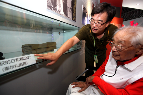 今年是紀念全民族抗戰(zhàn)爆發(fā)80周年。為支持開展國防教育,弘揚愛國熱情,7月18日上午,在南京國防園“中國人民解放軍軍史館”開館儀式上,105歲老紅軍、南京郵電學(xué)院首任黨委書記兼院長秦華禮向南京國防園慷慨捐贈珍藏了七十多年的抗戰(zhàn)文物兩件,并為軍史館開館揭幕。