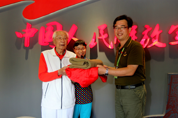 秦老向南京國防園捐贈日軍軍用毛毯和指北針