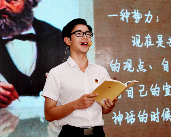 在青年誦環(huán)節(jié),學(xué)員代表張浩銘同學(xué)用鏗鏘飽滿的激情朗讀了馬克思主義經(jīng)典著作《共產(chǎn)黨宣言》中的精彩篇章,引起了同學(xué)們的共鳴。