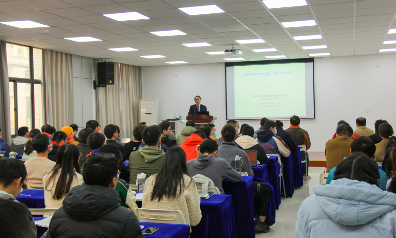 我校人事處、電子與光學(xué)工程學(xué)院、柔性電子(未來技術(shù))學(xué)院負(fù)責(zé)人,師生代表參加授聘儀式并聆聽報告。