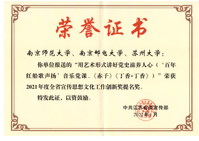 據(jù)悉,此次全省共有20項成果獲得2021年度全省宣傳思想文化工作創(chuàng)新獎,10項成果獲得2021年度全省宣傳思想文化工作創(chuàng)新獎提名獎,其中,高校只有“用藝術(shù)形式講好黨史滋養(yǎng)人心”一項成果獲獎。