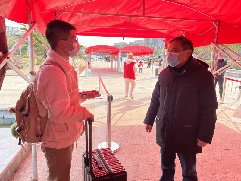 校黨委書記劉陳,校長葉美蘭,校黨委常委、副校長蔣國平、荊晅、郭宇鋒帶領相關職能部門負責人檢查返校工作情況,走訪學生返校現場、核酸檢測現場、學生宿舍,慰問一線工作人員,并與返校學生親切交談,歡迎大家平安歸來,詳細了解學習、生活等情況,叮囑做好安全防護,并勉勵同學們新學期在學習科研上取得更大突破,在拼搏與奮斗中努力實現青春夢想。仙林大學城管委會科教服務處負責人和五大員來校協助做好開學保障工作。
