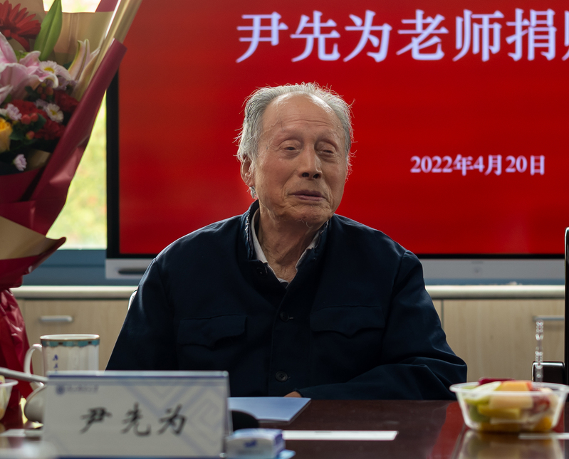 在捐贈儀式現場,劉陳書記代表全體南郵師生和廣大校友,向尹老的無私奉獻致以衷心的感謝和最崇高的敬意。他希望大家要學習尹老不忘初心、牢記使命的黨員本色,感受他熱心公益、服務社會的精神品質,領悟他艱苦樸素、永不褪色的高尚情操。劉陳書記表示,學校一定用好管好尹老的捐贈款,讓其惠及學校師生,助力學生成長成才,推動學校事業高質量發展。