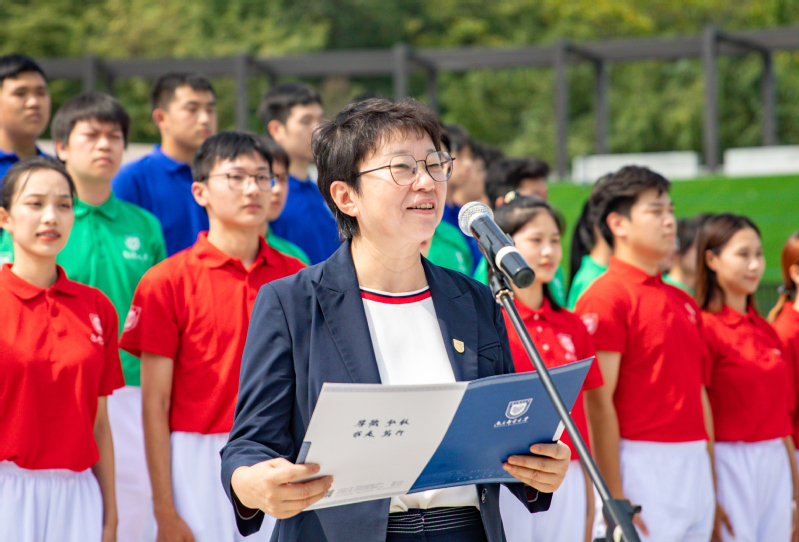 戰(zhàn)郵廣場的圖騰柱下,學生代表齊聲朗誦《戰(zhàn)郵廣場賦》,傳承學校80年辦學歷程中凝結(jié)的紅色血脈和奮斗精神。