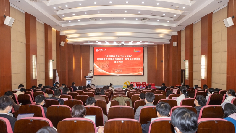 為深入學習宣傳貫徹黨的二十大精神,切實把我校大學生的思想統一到黨的二十大精神上來,12月9日下午,“學習貫徹黨的二十大精神”輔導員宣講團、優秀學子宣講團成立大會在仙林校區中天科技報告廳舉行。校黨委常委、副校長荊晅出席大會,相關職能部門負責人、二級學院黨委副書記、思政課導師代表、輔導員宣講團指導教師、全體宣講團成員、2022年新入職輔導員、校第六屆大學生年度人物參加會議。