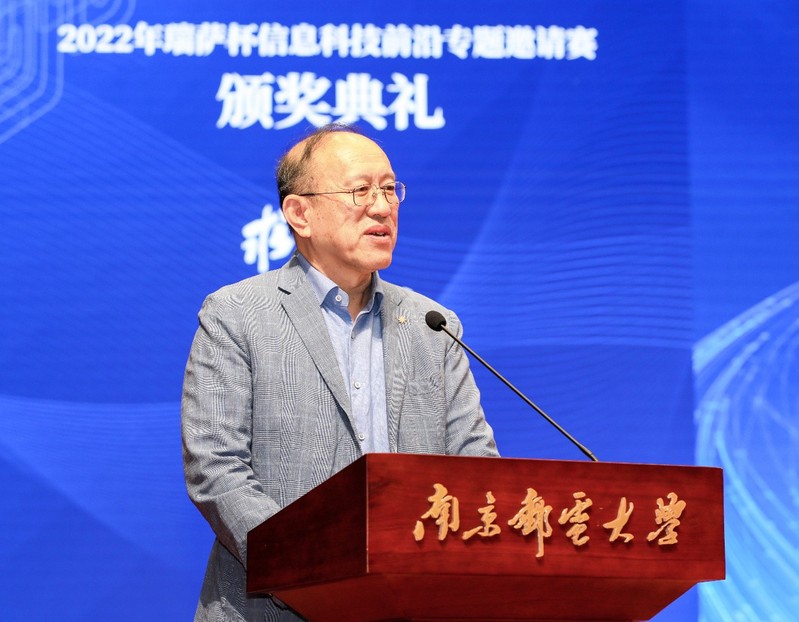全國大學生電子設計競賽組委會名譽主任、中國科學院院士、中國工程院院士王越,全國大學生電子設計競賽組委會主任、中國科學院院士管曉宏,瑞薩電子(中國)總裁賴長青,全國大學生電子設計競賽組委會副主任趙顯利,全國大學生電子設計競賽組委會秘書長、西安交通大學電子與信息學部副主任羅新民,南京郵電大學黨委常委、副校長王友國,競賽專家組專家,教務處(創新創業教育學院)、電子與光學工程學院、柔性電子(未來技術)學院、集成電路科學與工程學院(產教融合學院)相關負責人出席頒獎典禮并為獲獎學生頒獎。