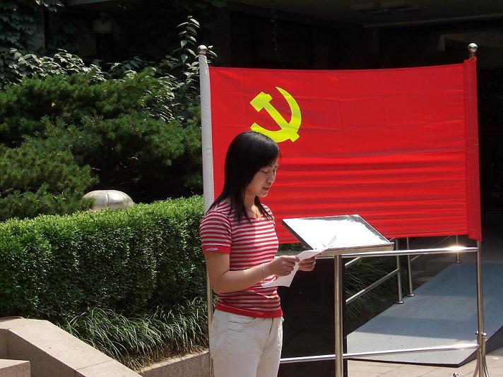 入黨宣誓儀式在嘹亮的《國歌》歌聲中開始,宣誓儀式由院黨總支副書記張翼主持,全體預備黨員面對鮮紅的黨旗舉起