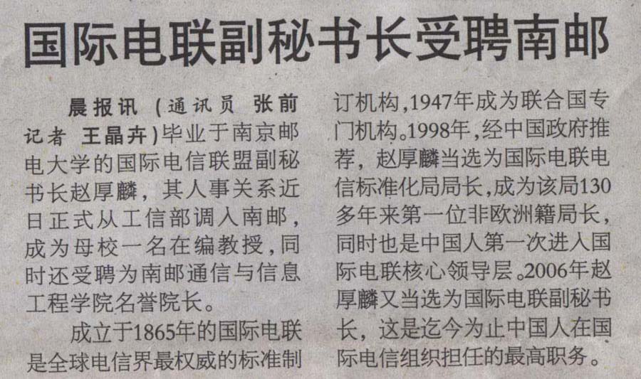 【南京晨報】國際電聯(lián)副秘書長受聘南郵
