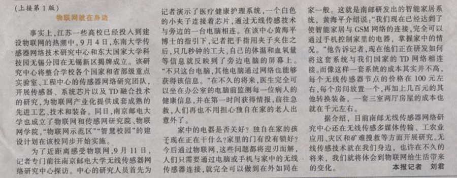 【江蘇教育報】迎接物聯網熱潮 江蘇高校在行動