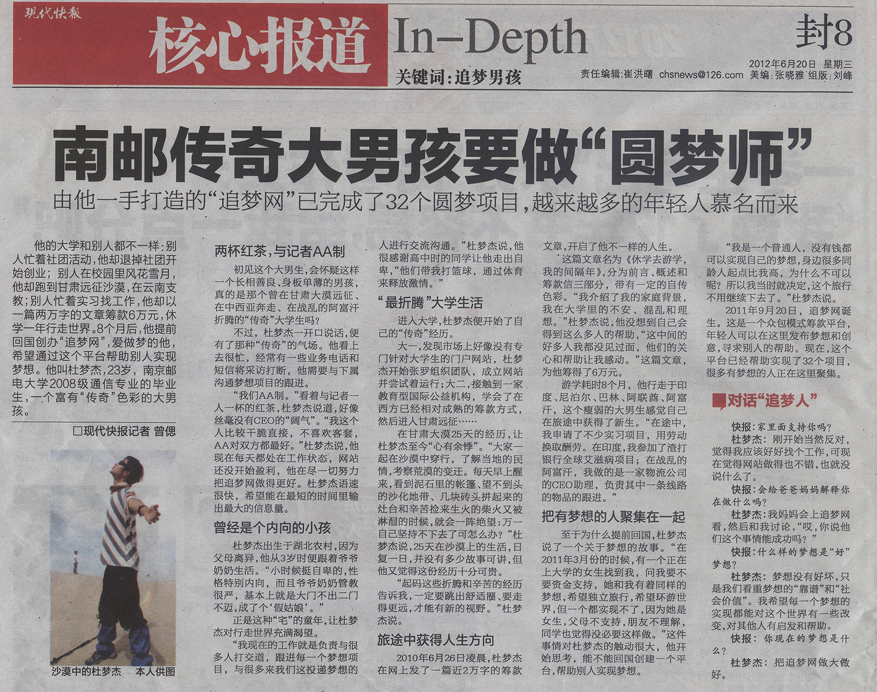 【現代快報】南郵傳奇大男孩要做“圓夢師