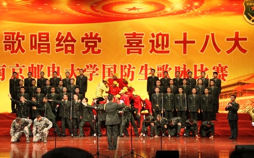 10月26日晚,南京郵電大學仙林校區青春劇場燈火輝煌、座無虛席,隨著激揚的歌聲不時爆發雷鳴般的掌聲……一場以“紅歌唱給黨,喜迎十八大”為主題的國防生歌詠比賽正異彩紛呈地上演。