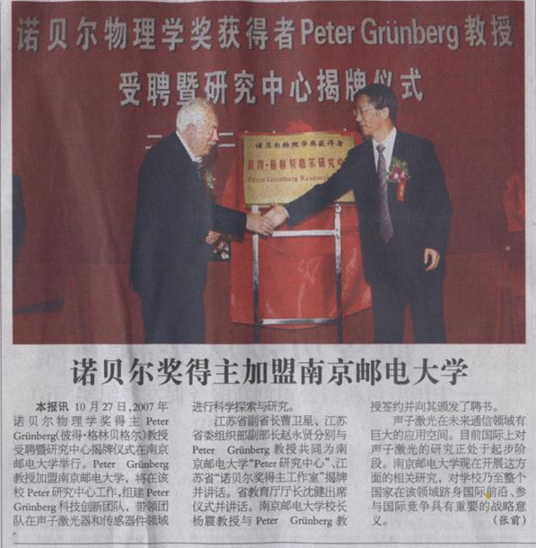 【人民郵電】諾貝爾獎(jiǎng)得主加盟南京郵電大學(xué)
