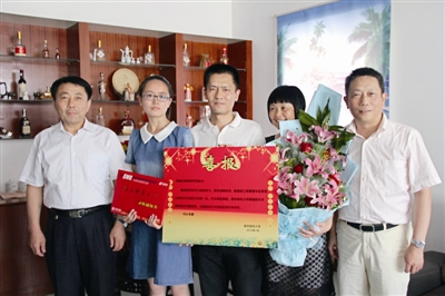 今年南京郵電大學錄取的文科類、理科類、自主選拔的第一名,都是泰州學子。昨天,南京郵電大學黨委常委、副校長王宗榮一行來到泰州,給3名優秀考生送來錄取通知書。