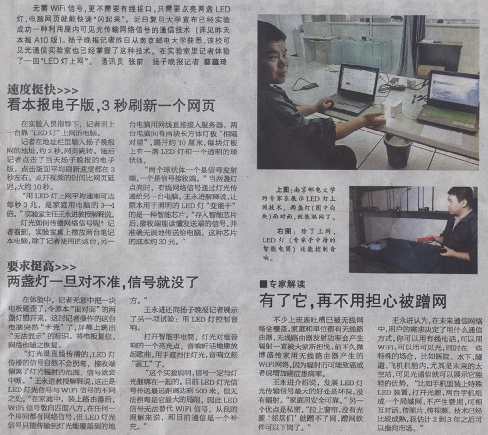 【揚子晚報】揚子記者在南郵體驗“LED燈上網”