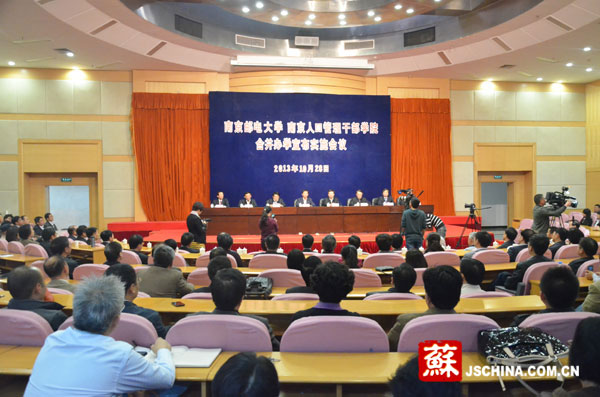 中國江蘇網10月28日訊(記者 袁濤)今天下午,南京郵電大學、南京人口管理干部學院合并辦學宣布實施工作會議在南京召開。記者在會上了解到,南郵大和南京人口學院今起合并辦學,組建新的南京郵電大學,南京人口管理干部學院撤銷建制。