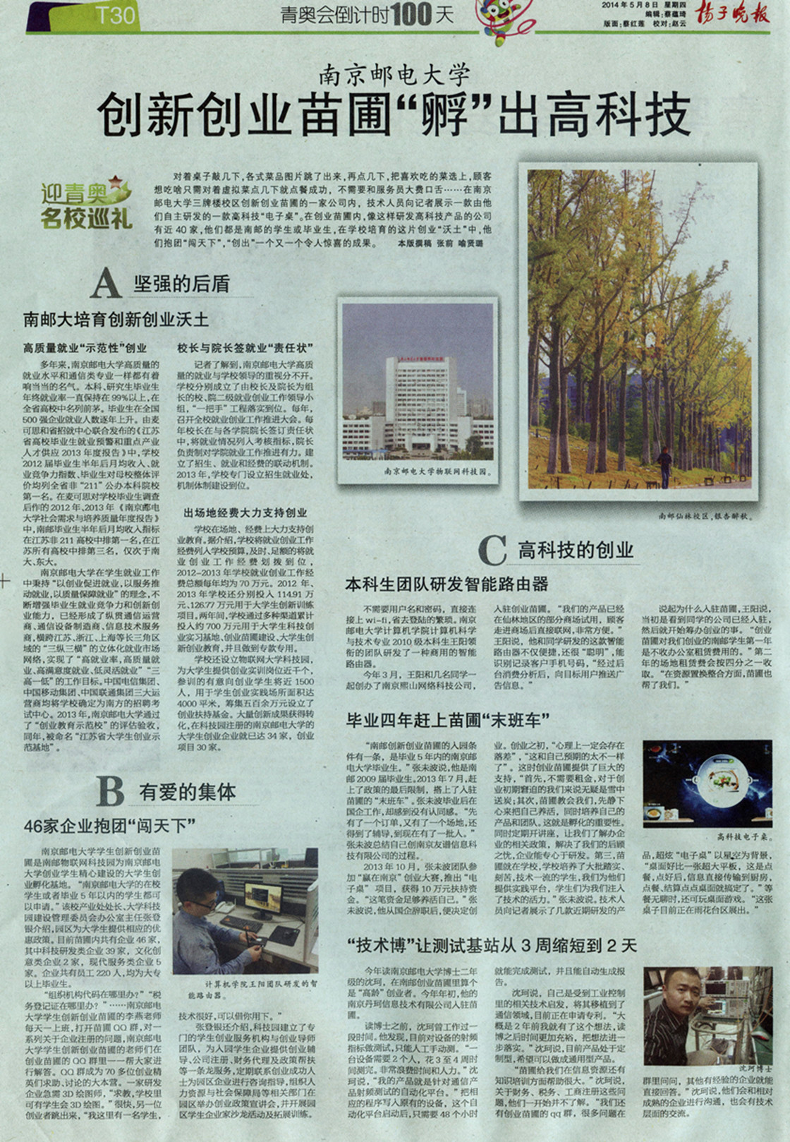 【揚子晚報】創新創業苗圃“孵”出高科技