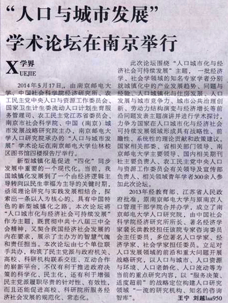 【中國人口報】人口與城市發展學術論壇在南京舉行