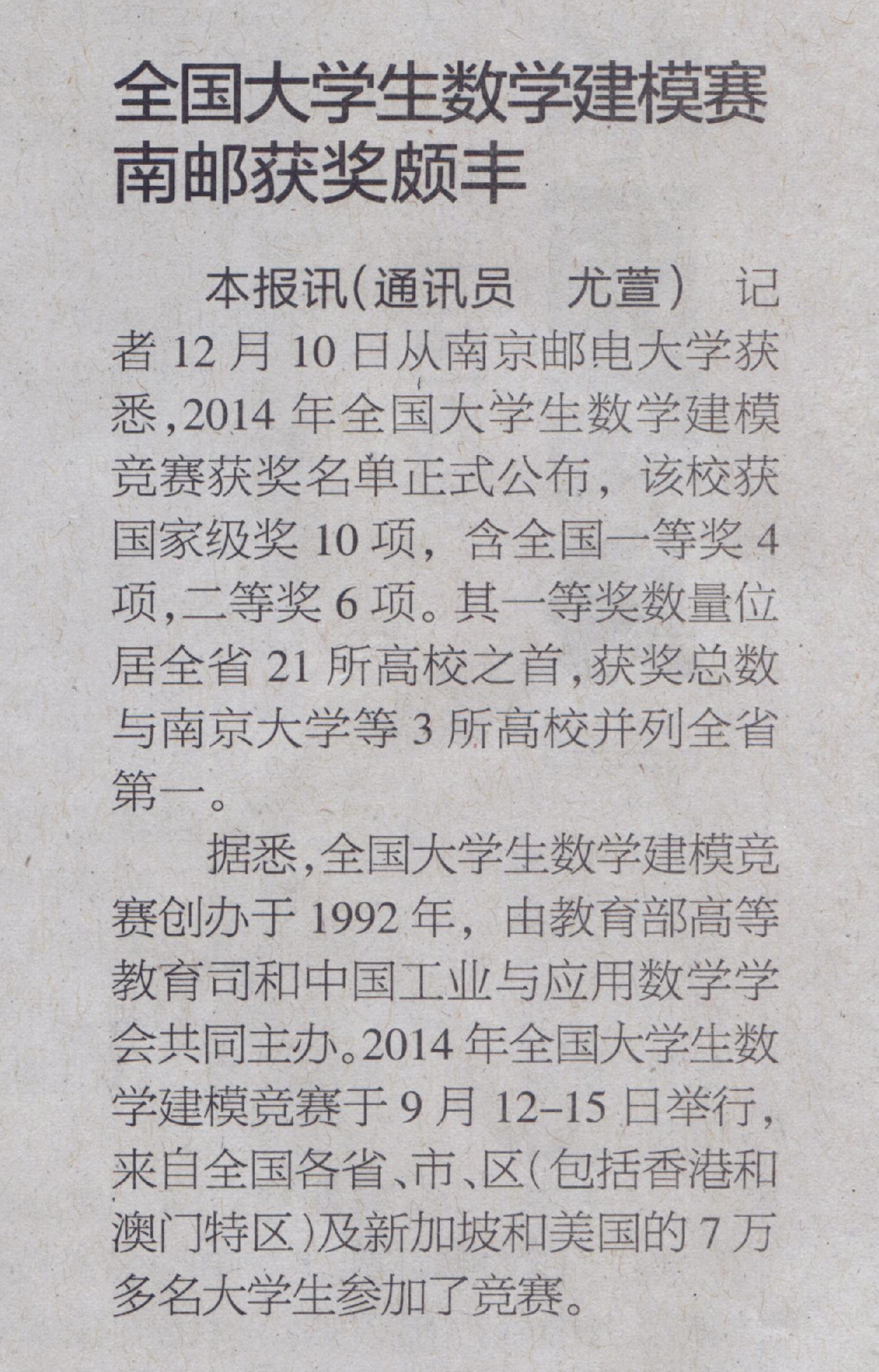 【江蘇教育報】全國大學生數學建模賽南郵獲獎頗豐