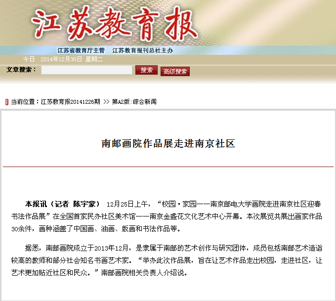【江蘇教育報】南郵畫院作品展走進南京社區