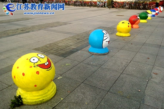 (通訊員 張前)大白、機器貓、皮卡丘、龍貓……,這些可愛的卡通形象出現在了南京郵電大學的校園內。4月11日中午開始,傳媒與藝術學院的二十多位同學手持畫筆,把校園里的路障球裝扮得萌萌噠。該院學生會主席朱林同學介紹說:“一個路障球需要花上4個小時才能裝扮好。同學們積極性很高,從上午九點就開始畫了。”他接著又說到:“我們前期集思廣益,向全校征集好點子。最終決定在圖書館、教學樓、南大門三個區域的70多個路障球上,分學校形象、青春、運動、安全等主題,通過涂鴉卡通形象、各種球類以及學校元素,為校園春色增添了一道亮麗的風景。