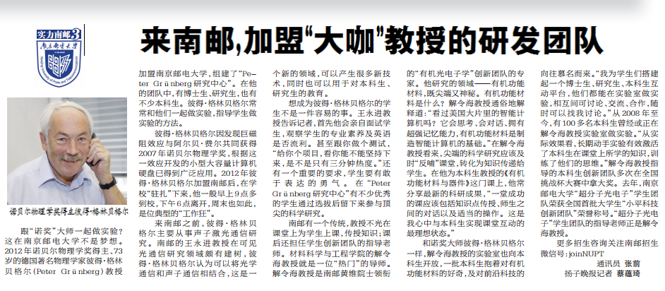 【揚子晚報】來南郵,加盟“大咖”教授的研發團隊