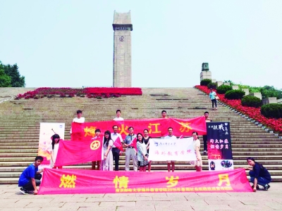 1937年7月7日,宛平縣盧溝橋,是日本帝國主義全面侵華的開始,也是中華民族進行全面抗戰的開始。今年正值抗日戰爭勝利70周年,南京郵電大學海外教育學院為牢記抗戰歷史,弘揚抗戰精神,傳承紅色文化,組織學生開展“烽火江蘇 燃情歲月”抗戰宣傳活動。為更細致地了解實踐活動地的抗戰文化,學習抗日戰士們英勇抗日的精神,南郵海外教育學院將學生隊伍分為南北兩隊,于7月7日至7月12日到江蘇各地進行走訪調查,最后會師南京,拜訪秦禮華老書記,并在雨花臺開展了閉幕儀式。