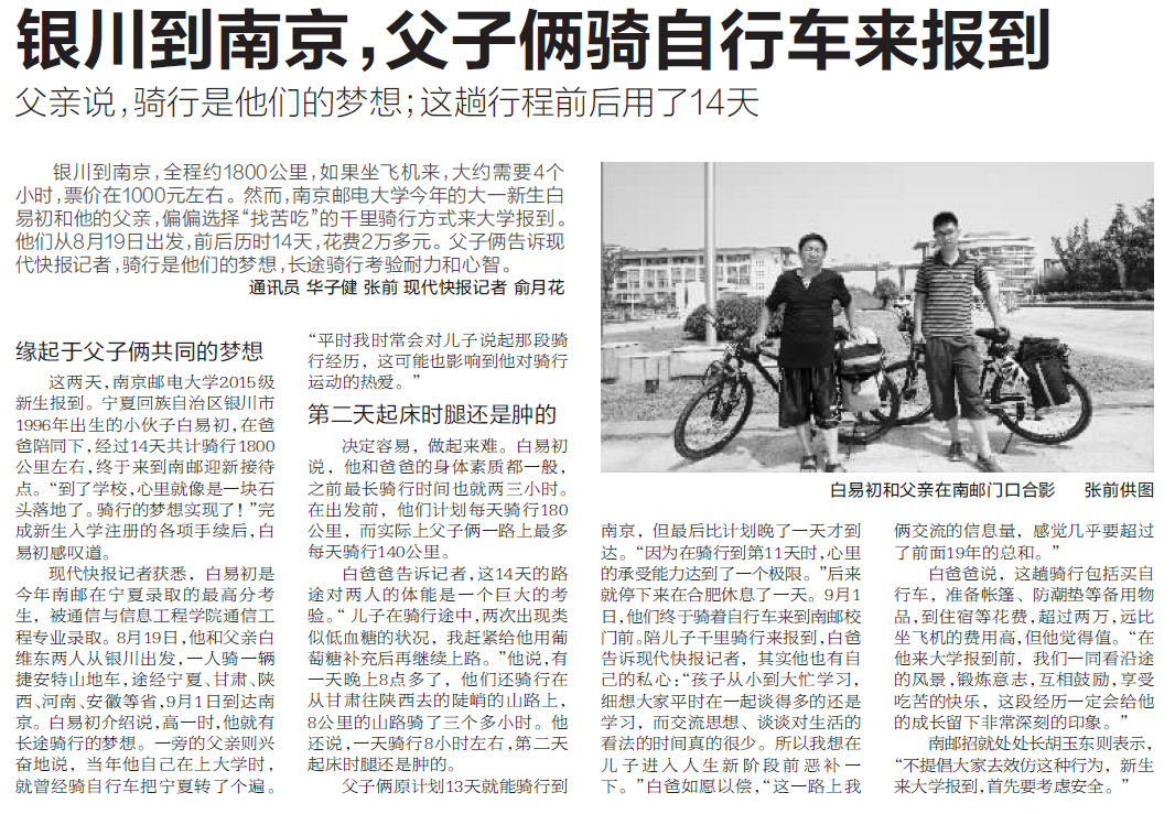 【現代快報】銀川到南京,父子倆騎自行車來報到