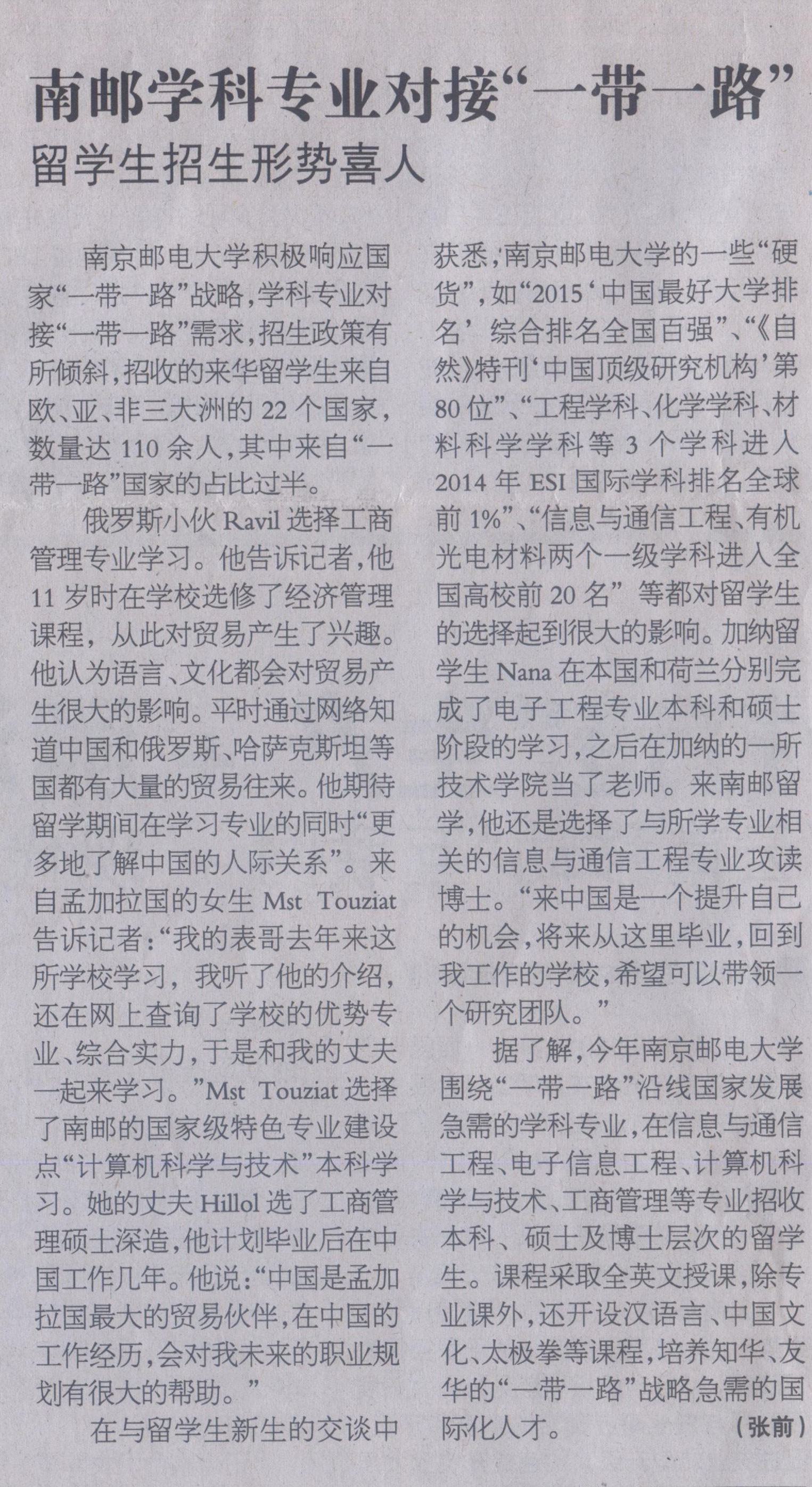 【人民郵電】南郵學科專業對接“一帶一路” 留學生招生形勢喜人