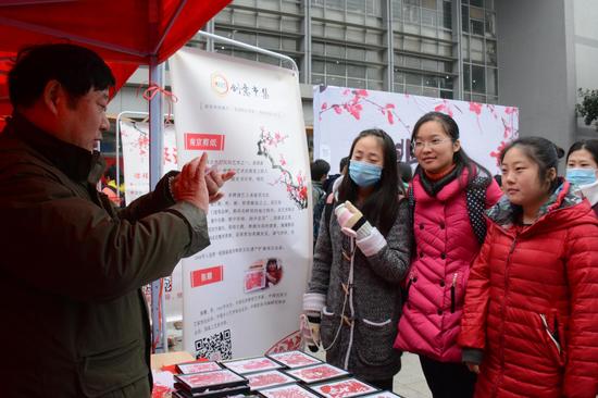 記者在現場看到,面對傳統手工藝品,南京郵電大學的學生們展現出深厚的興趣,每個展臺前都人氣爆棚。區別于博物館和藝術館的靜態作品展示,非物質文化遺 產展最吸引人的地方在于傳承人現場技藝展示與觀眾零距離欣賞的互動結合。“經常在一些古裝片里看到這樣的荷花燈,沒想到還有機會親自動手做一個屬于自己的 花燈!”大二的一位同學在曹真榮大師的指點下一絲不茍地搭著花燈。一位女生則當起模特,非遺剪紙大師陳耀即興展示側臉剪紙作品。這位女生告訴記者,雖然生 活中經常見到剪紙,但是擁有自身元素的剪紙還是頭一次見。栩栩如生的剪紙、惟妙惟肖的風箏、小巧精致的竹籃……無不引起路過同學的駐足欣賞。當然,更多的 同學忙碌地穿梭在各個展臺之間,領略各類項目的別樣風采。