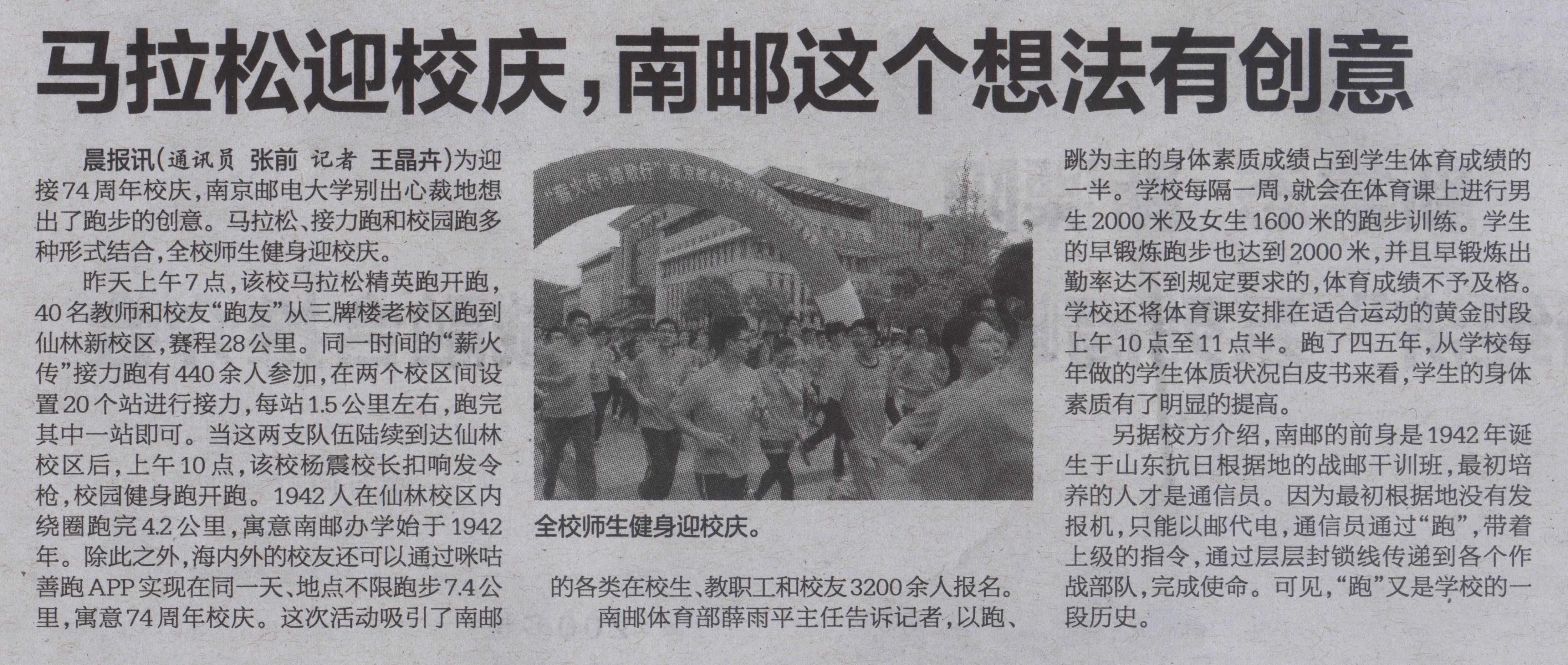 【南京晨報(bào)】馬拉松迎校慶,南郵這個(gè)想法有創(chuàng)意