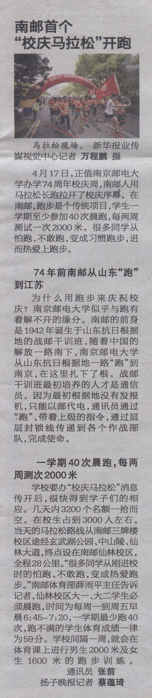【揚(yáng)子晚報】南郵首個“校慶馬拉松”開跑