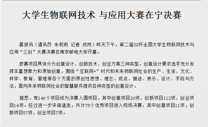 【南京晨報】大學生物聯網技術 與應用大賽在寧決賽