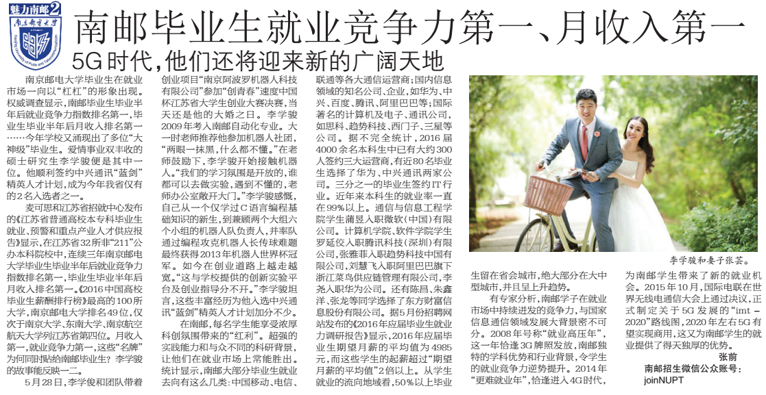 【揚子晚報】南郵畢業生就業競爭力第一,月收入第一
