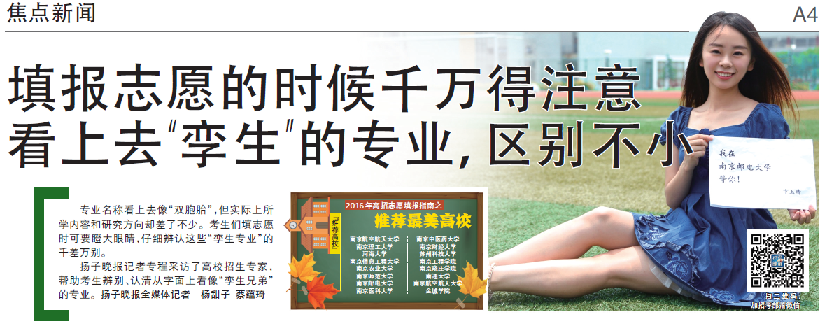 【揚子晚報】看上去“孿生”的專業,區別不小