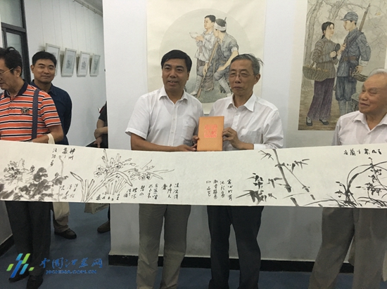 展覽上,中國手指畫研究會副會長、江蘇省詩詞協會理事趙鉦將他繪制的近6米長的寫意花鳥長卷作品,捐贈給南京郵電大學藝術館。記者看到,畫作中的梅蘭竹菊生機盎然,寓意“欣欣向榮”,以此慶賀黨的生日。