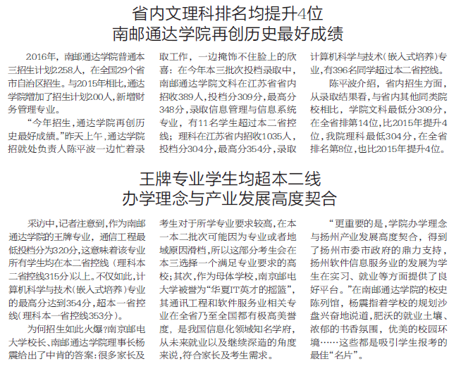 【揚州時報】南郵通達學院招生再創(chuàng)歷史最好成績