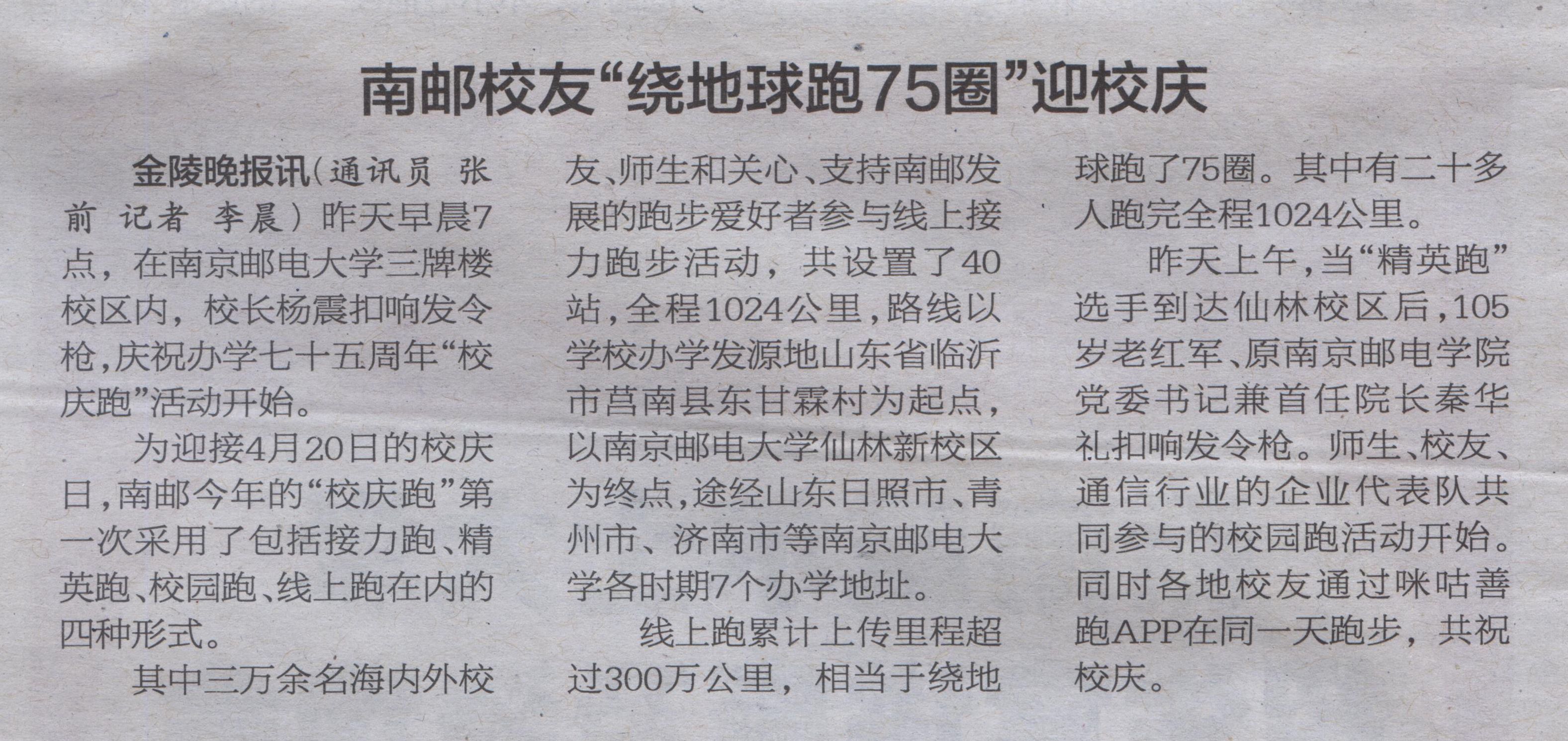 【金陵晚報】南郵校友“繞地球跑75圈”迎校慶