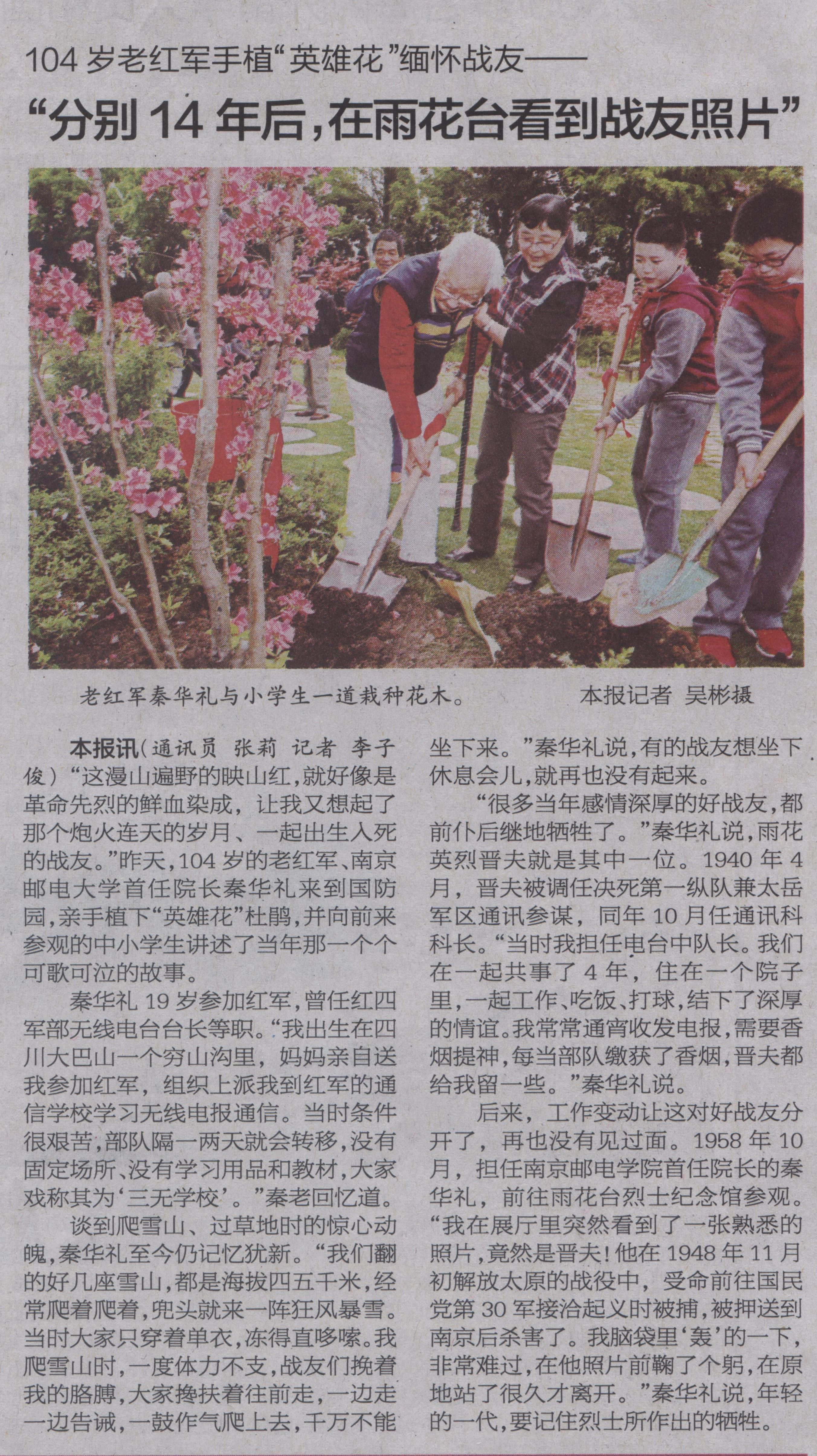 【南京日?qǐng)?bào)】“分別14年后,在雨花臺(tái)看到戰(zhàn)友照片”