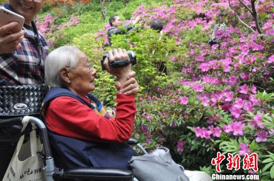 105歲老紅軍親手栽下一株映山紅。 沈金霞 攝
