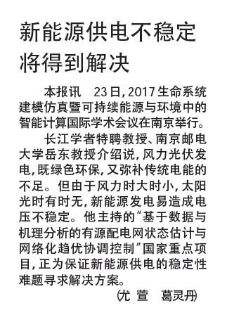 【新華日報】新能源供電不穩(wěn)定 將得到解決