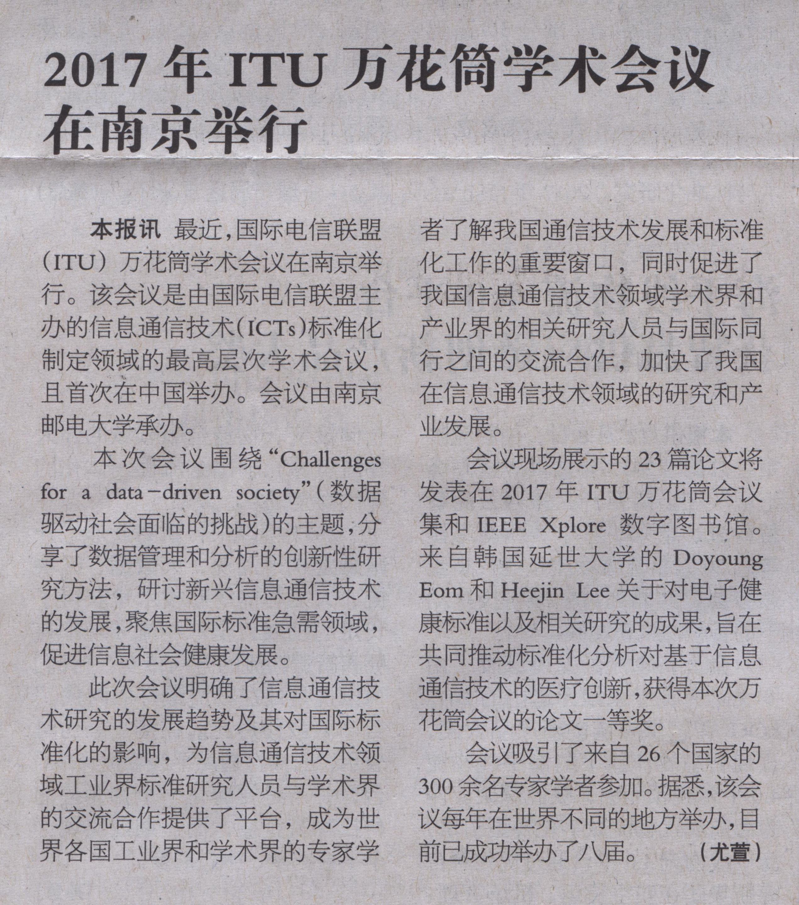 【人民郵電報】2017年ITU萬花筒學術會議在南京舉行