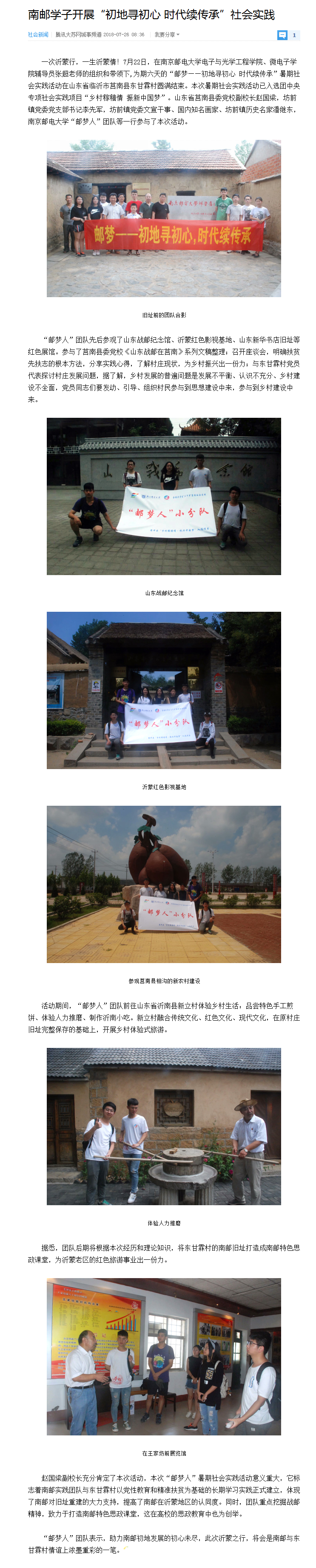 【騰訊大蘇網】南郵學子開展“初地尋初心 時代續傳承”社會實踐