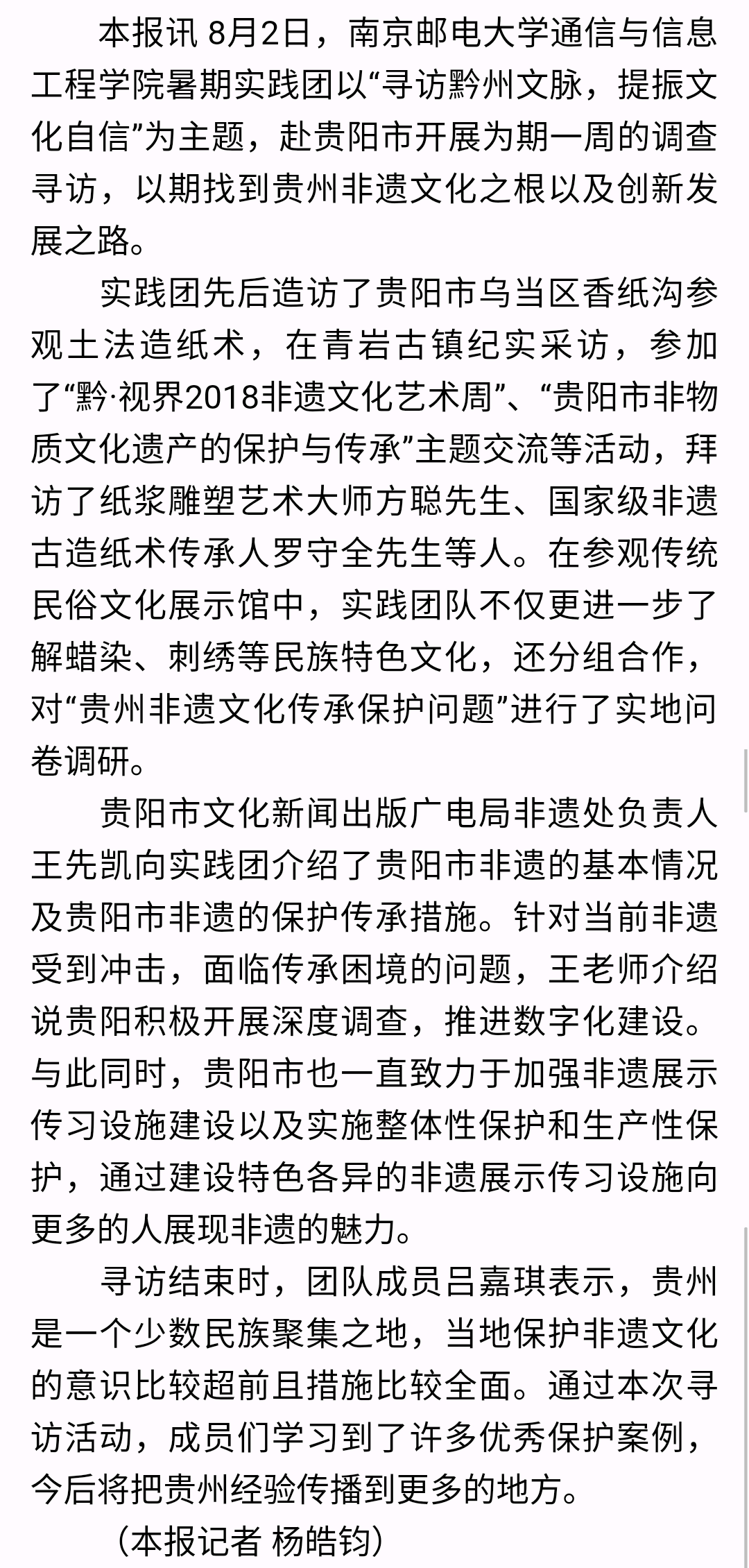 【貴陽晚報】南京學子實踐團來黔尋訪文脈