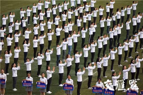 2018年10月19日,南京郵電大學舉辦該校第四十九屆田徑運動會,來自各個院系的大學生們整齊亮相,配以不同的服飾輪番展示神靈活現的舞龍舞獅、青春洋溢的啦啦操、整齊劃一的團體操、氣勢恢宏的武術等節目,場面壯觀吸引眼球。交匯點記者萬程鵬攝