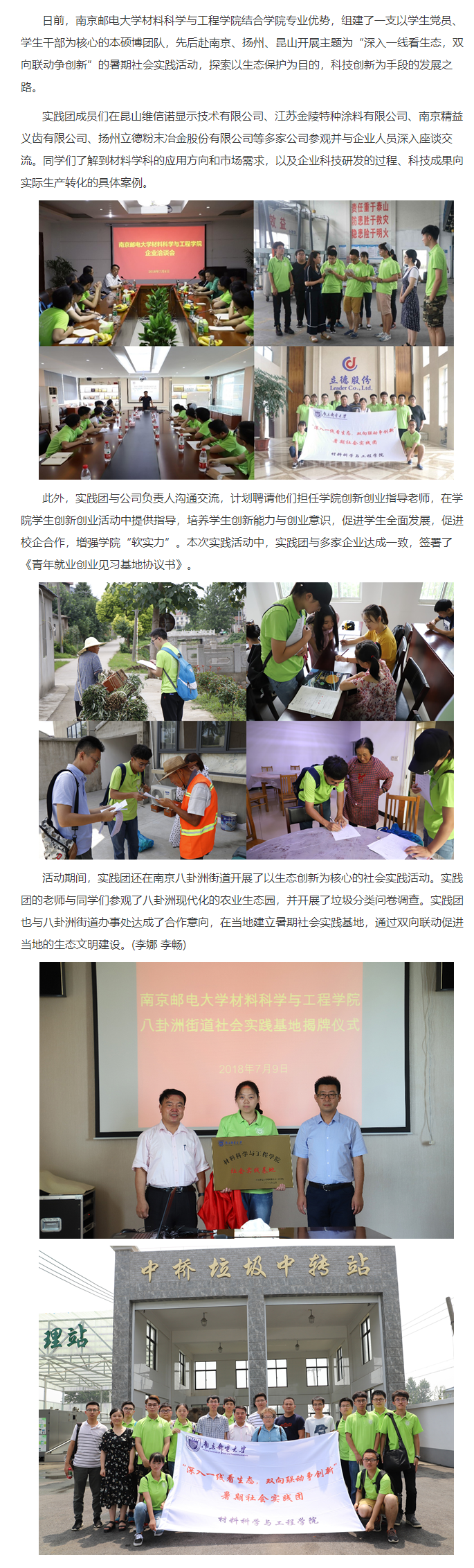 【新華網】南郵材料院暑期實踐團走進南京、揚州、昆山