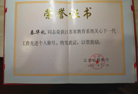 離休后的秦老還經常受邀參加各種學校組織的報告會、講座、紀念活動等,為學生們答疑解惑、排憂解難。他自立規矩,每次演講不要酬金,不接受吃請。他的慷慨解囊助力貧困山區小孩圓了上學夢,他多次奉獻愛心,為得到捐助的困難群眾帶去了曙光。秦老曾榮獲“江蘇省教育系統關心下一代工作先進個人稱號”和“全國教育系統關心下一代工作先進個人”。