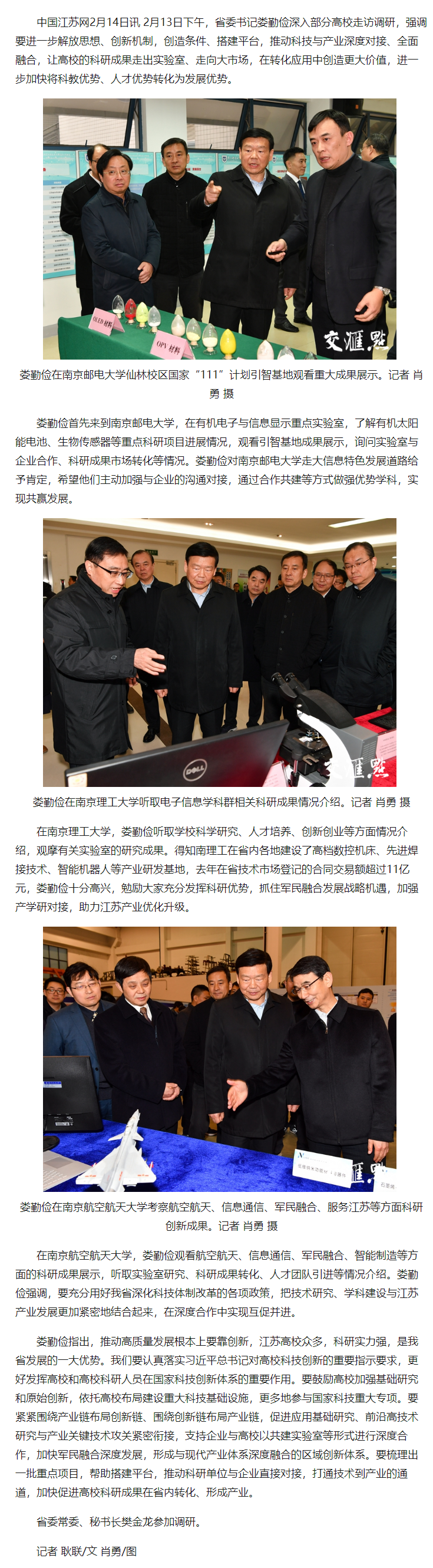 【中國江蘇網】江蘇省委書記高校調研:讓科研成果走出實驗室走向大市場