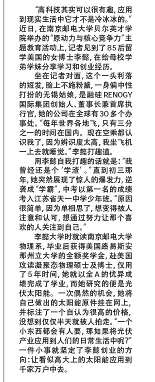 【新華日報】85后女博士將新能源應用生活化