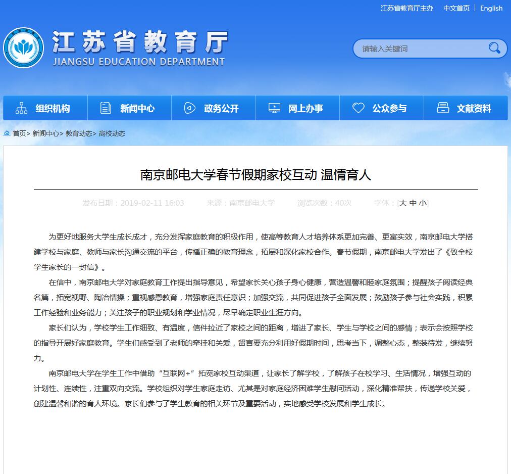 【江蘇教育】南京郵電大學春節假期家校互動 溫情育人